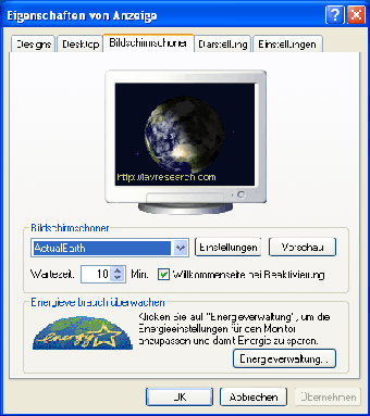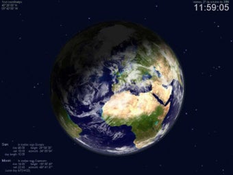 Actual Earth 3D projiziert ein nahezu fotorealistisches Bild der Erde in Echtzeit auf den Desktop. Der kostenlose Bildschirmschoner orientiert sich dabei am geografischen Standpunkt des Anwenders sowie dem aktuellen Datum samt Uhrzeit.Nach dem ersten Start von Actual Earth 3D gibt man den eigenen geografischen Standpunkt an. Anhand dieser Information sowie der Systemuhr zaubert die Freeware ein unserem blauen Planeten exakt entsprechendes Bild auf den Monitor. Dabei blickt man als Betrachter dieser virtuellen Astronautensicht genau auf den zuvor angegebenen Standpunkt. Funkelnde Sterne im Hintergrund runden den nett gemachten Weltall-Bildschirmschoner ab.